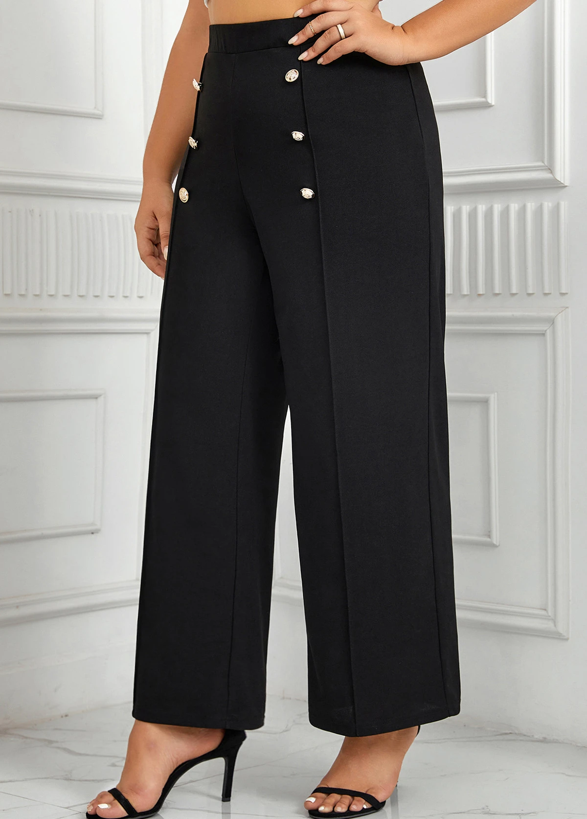 Black Button Plus Size Elastic Waist High Waisted Pants