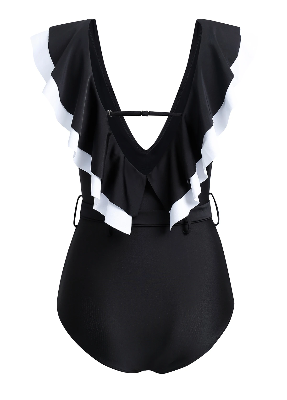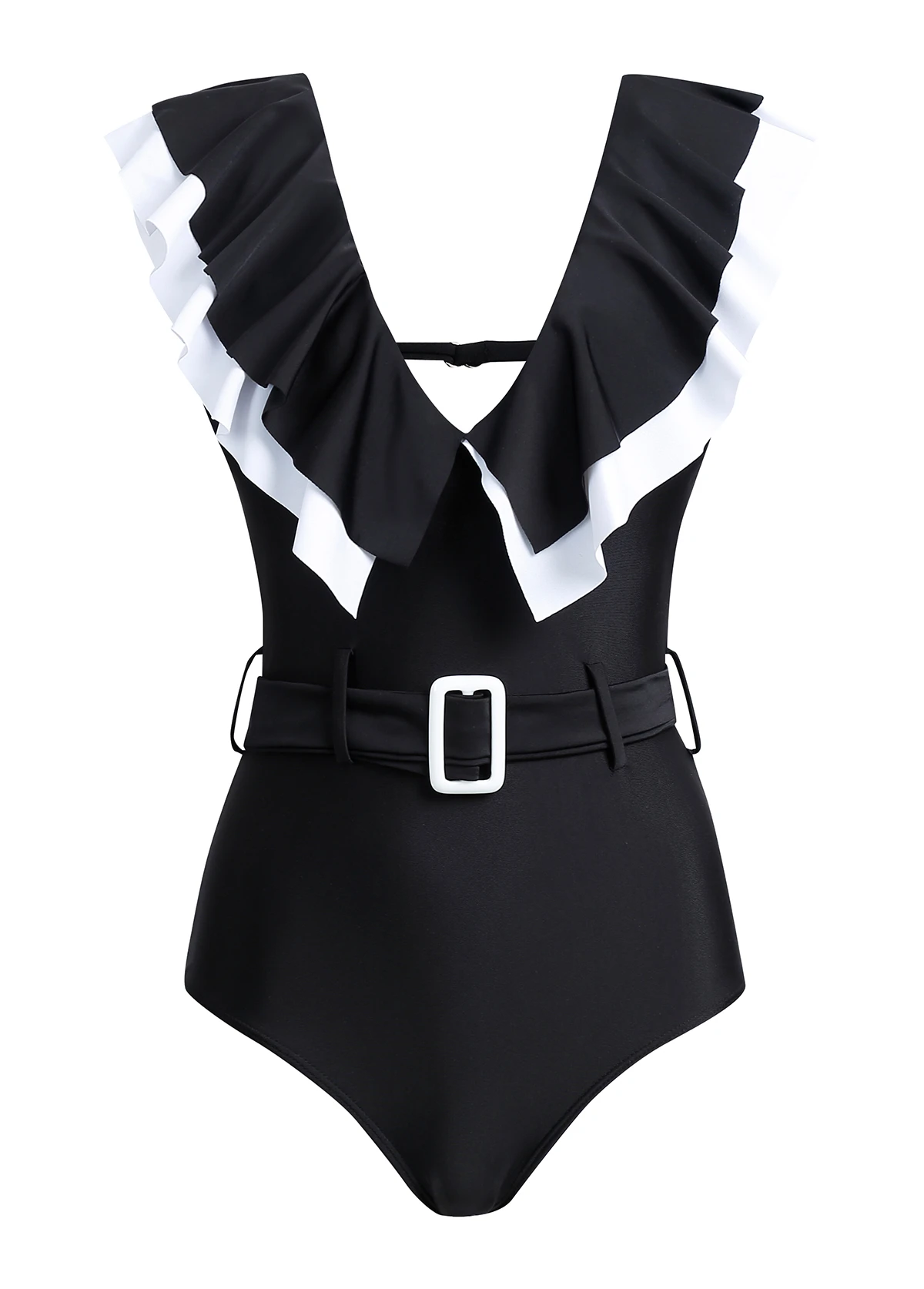 Black Flounce Buckle Detail One Piece Swimwear