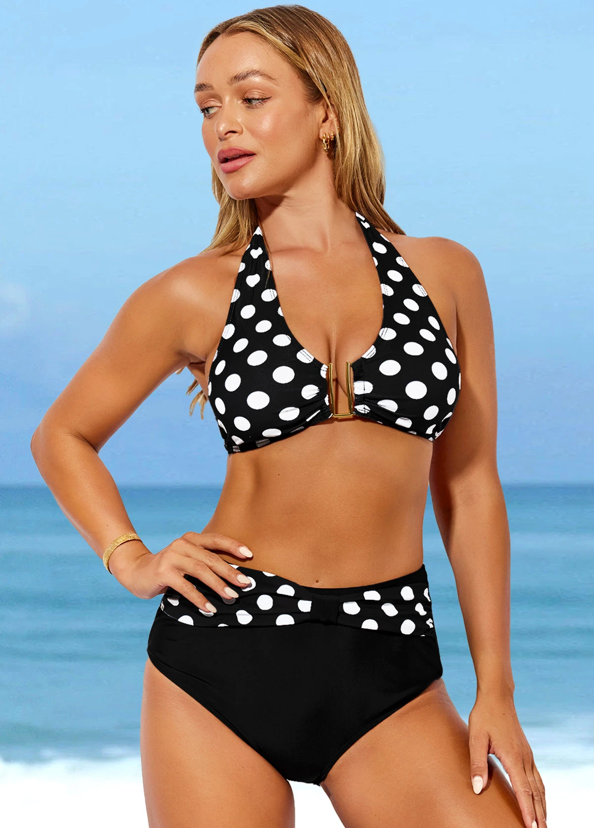Be the first to review “Black Polka Dot High Waisted Halter Bikini Set” Cancel reply