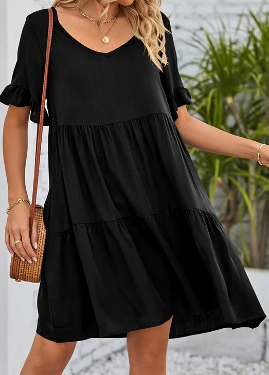 Black Ruched A Line Half Sleeve Dress