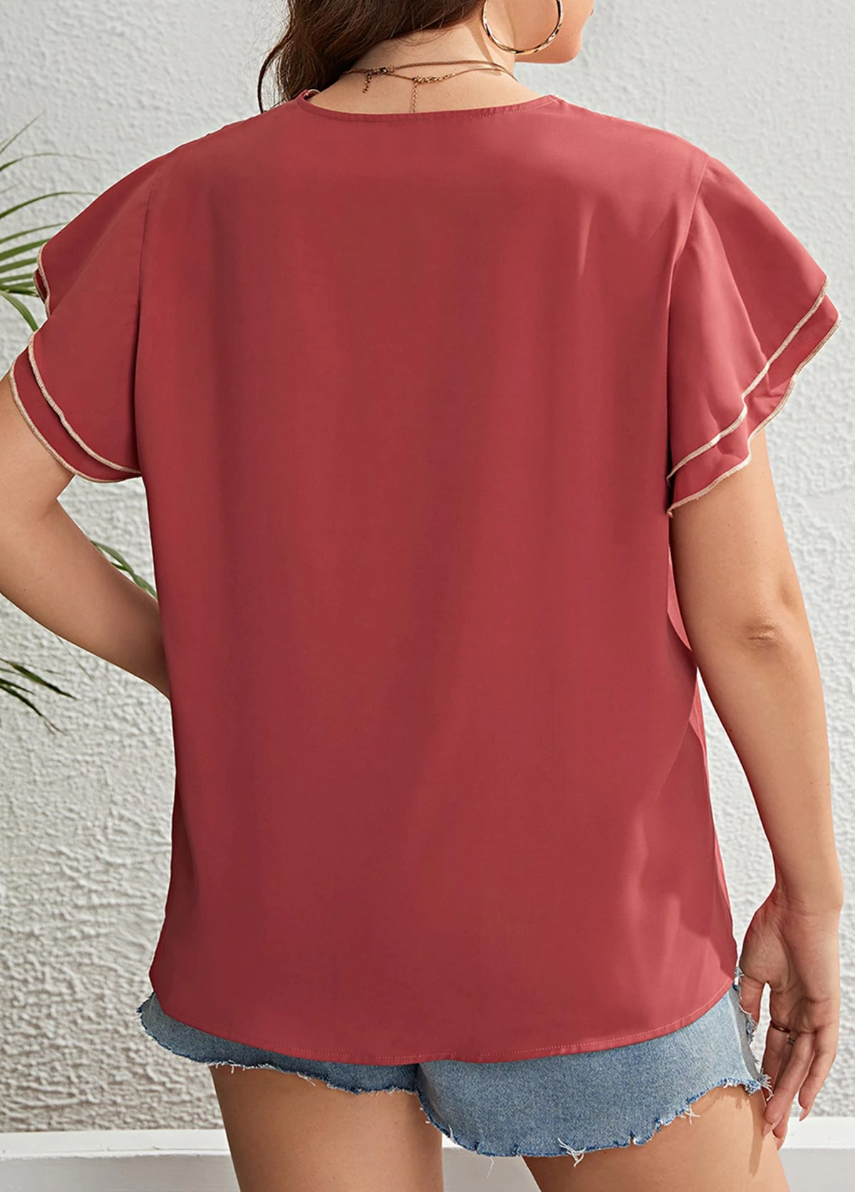 Coral Ruffle Plus Size Short Sleeve T Shirt