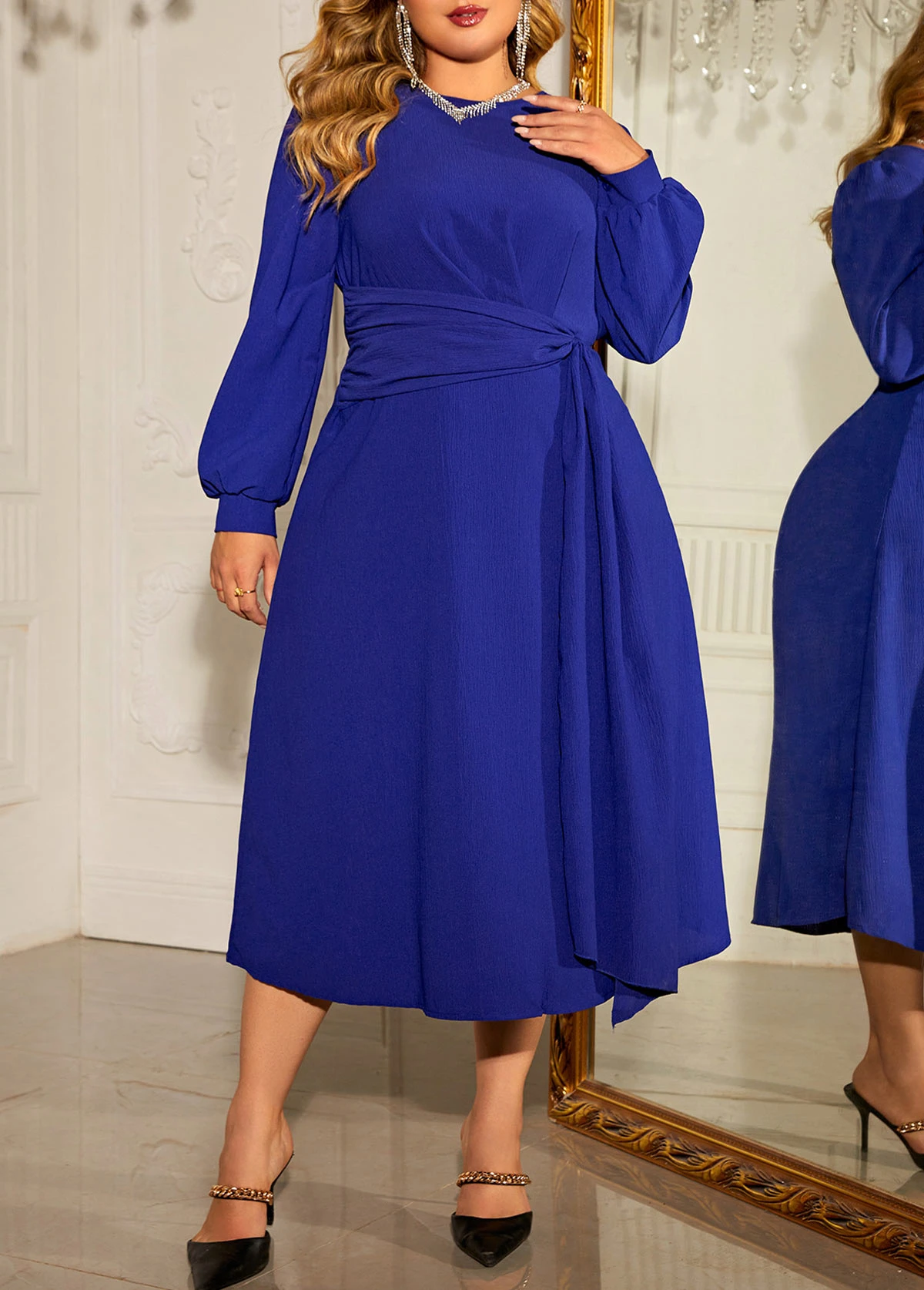 Dark Blue Plus Size Long Sleeve Round Neck Dress