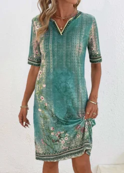 Be the first to review “Green Patchwork Floral Print Shift Dress” Cancel reply