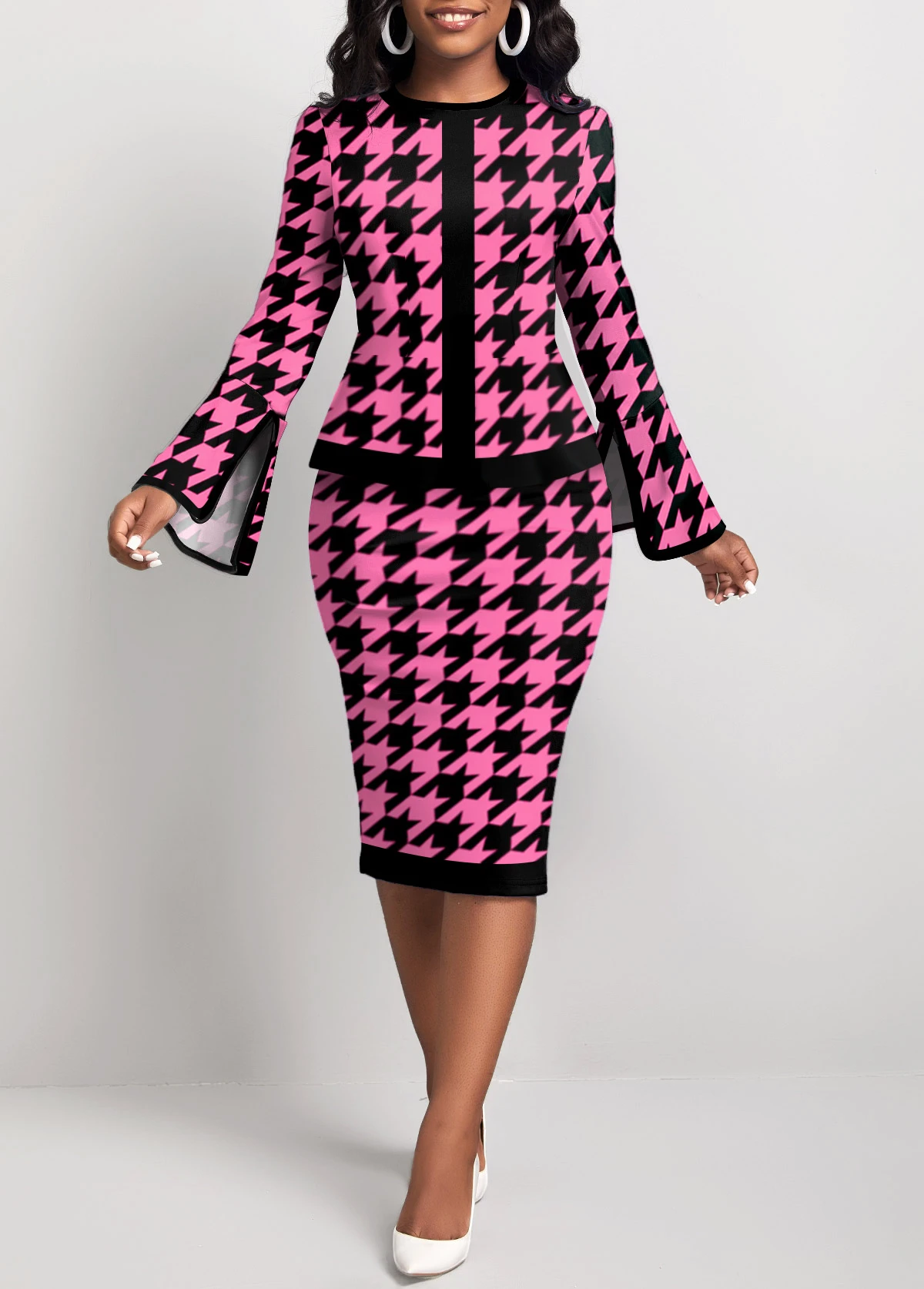 Be the first to review “Hot Pink Two Piece Houndstooth Print Top And Skirt” Cancel reply