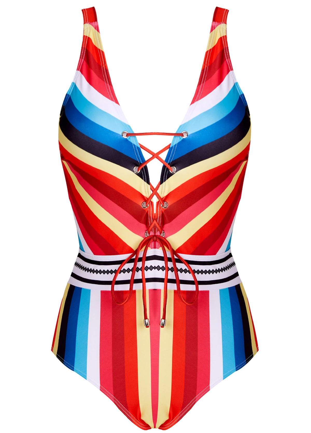 Be the first to review “Lace Up Striped Wide Strap One Piece Swimwear” Cancel reply