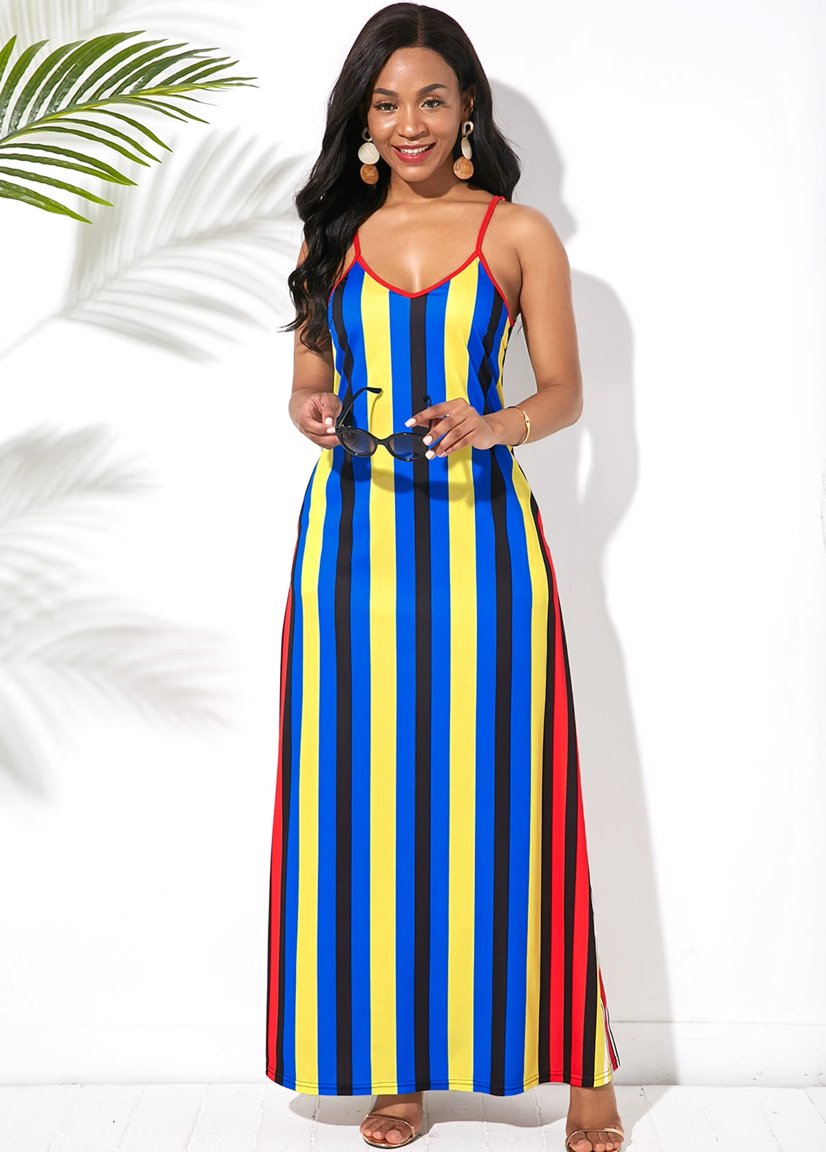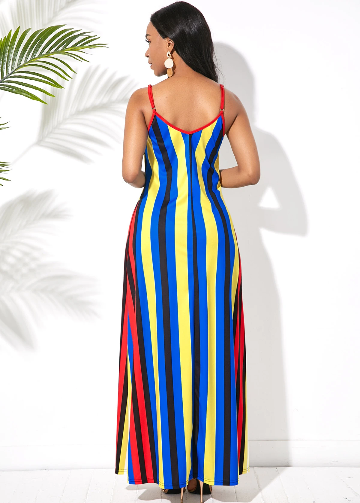Multi Stripe Spaghetti Strap Side Pocket Maxi Dress