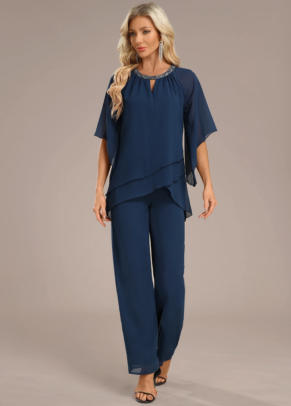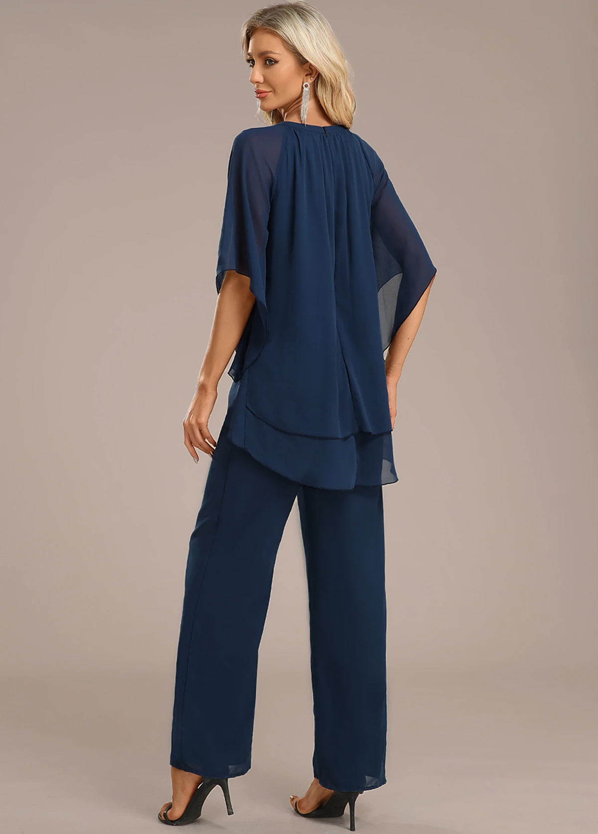 Navy Layered Long Three Quarter Length Sleeve Jumpsuit