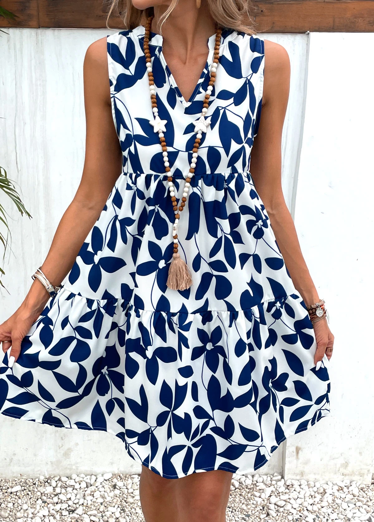 Be the first to review “Navy Ruched Leaf Print A Line Dress” Cancel reply