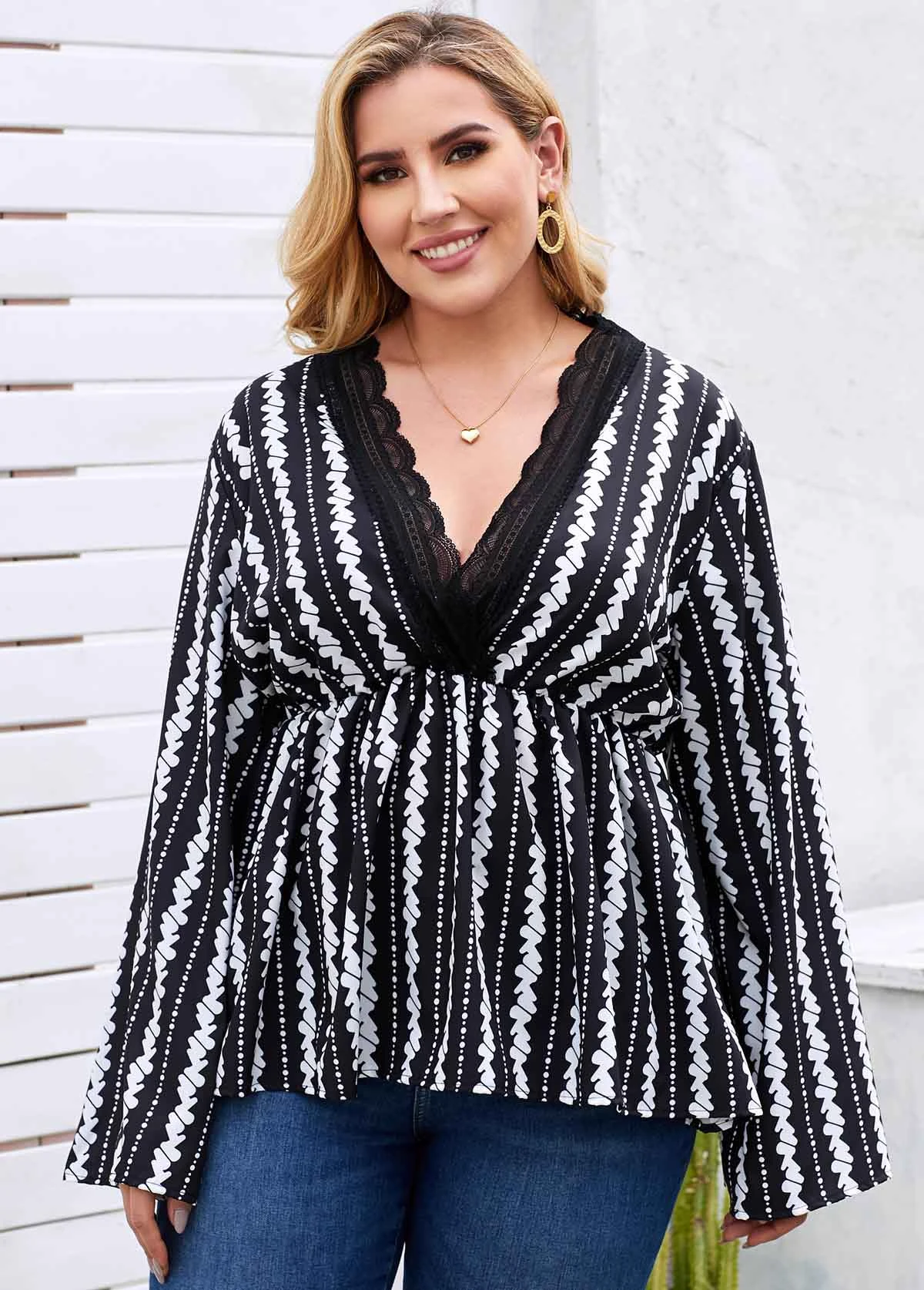 Be the first to review “Plus Size Lace Trim Printed Blouse” Cancel reply