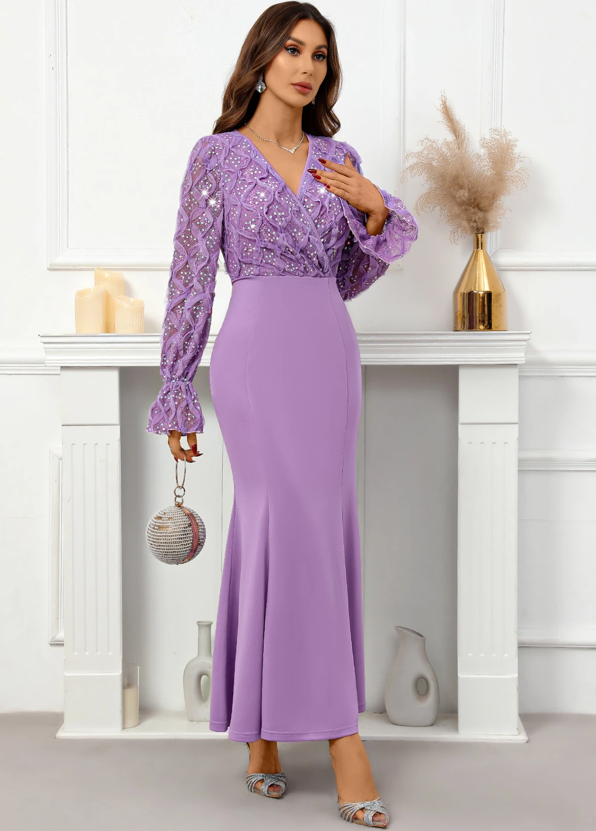 Be the first to review “Purple Sequin Maxi Long Sleeve V Neck Bodycon Dress” Cancel reply