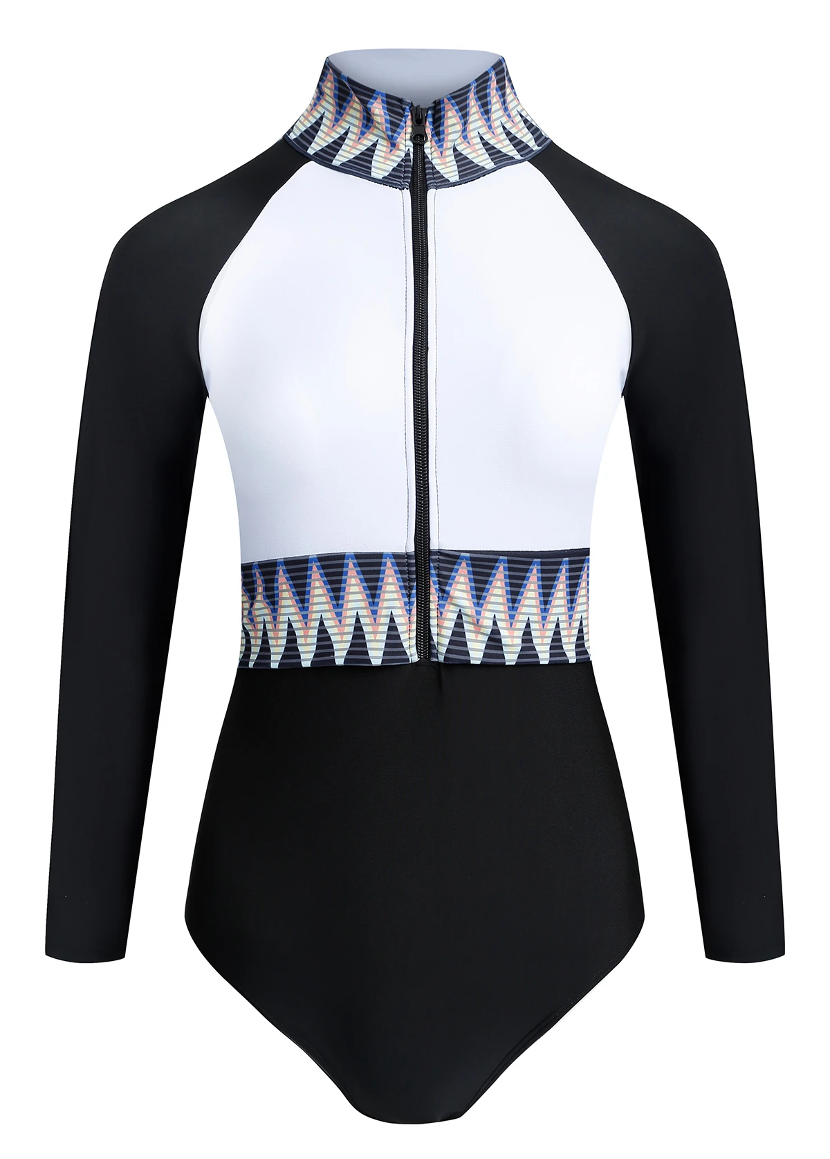 Be the first to review “Quarter Zip Long Sleeve Chevron Print One Piece Swimwear” Cancel reply
