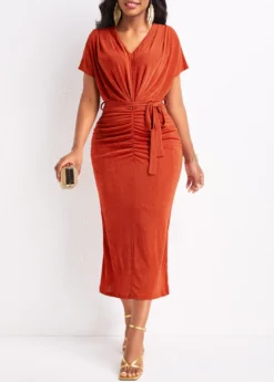 Be the first to review “Red Ruched Belted Short Sleeve Bodycon Dress” Cancel reply