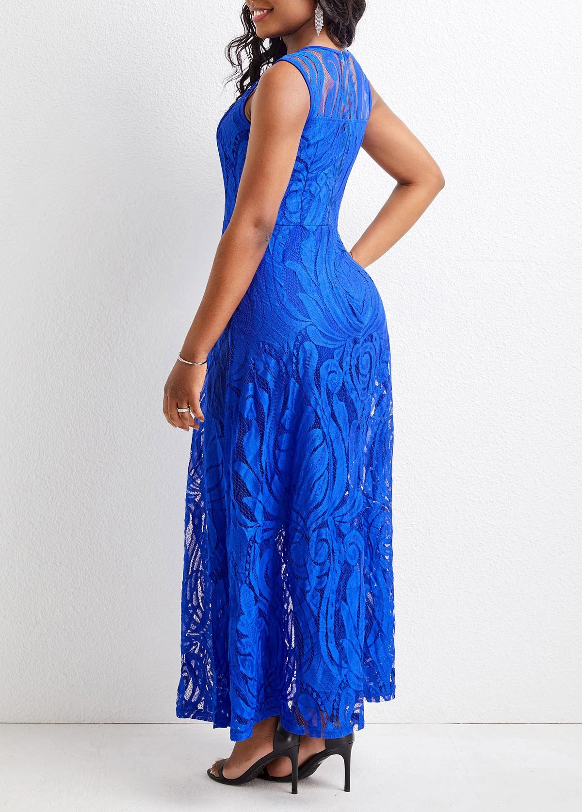 Royal Blue Lace Ankle Length Sleeveless Jumpsuit
