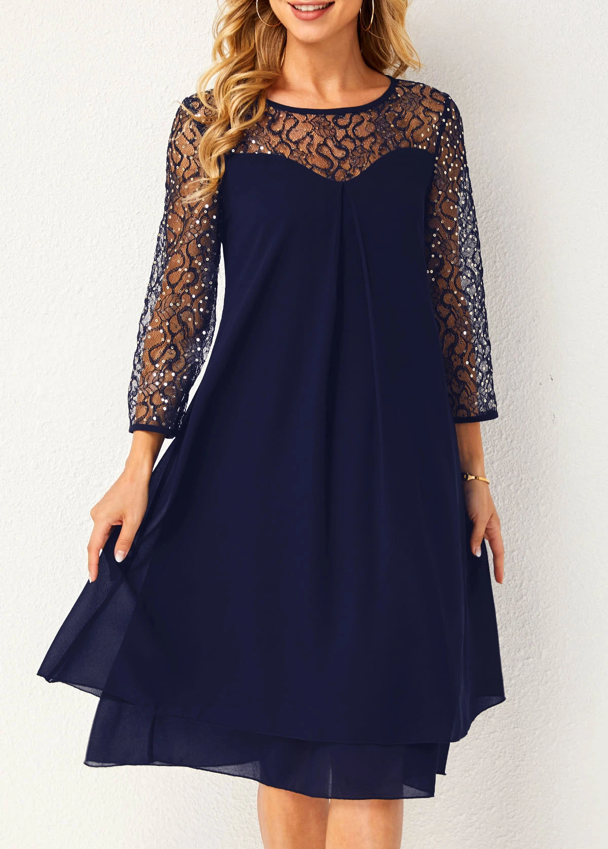 Sequin Lace Stitching Navy Blue Dress
