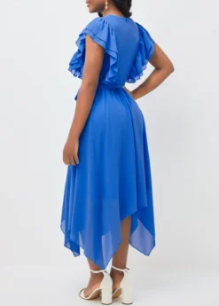 Asymmetric Hem Hot Pink Butterfly Print Swimdress And Shorts