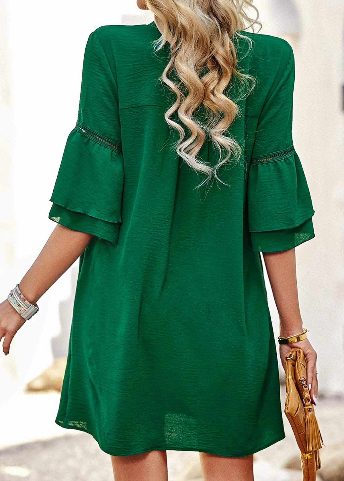 Be the first to review “Split Neck Green Patchwork Short Shift Dress” Cancel reply