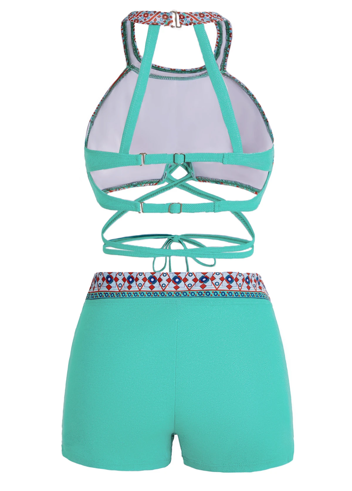 Be the first to review “Tribal Print Cutout Back Tie Front Bikini Set” Cancel reply
