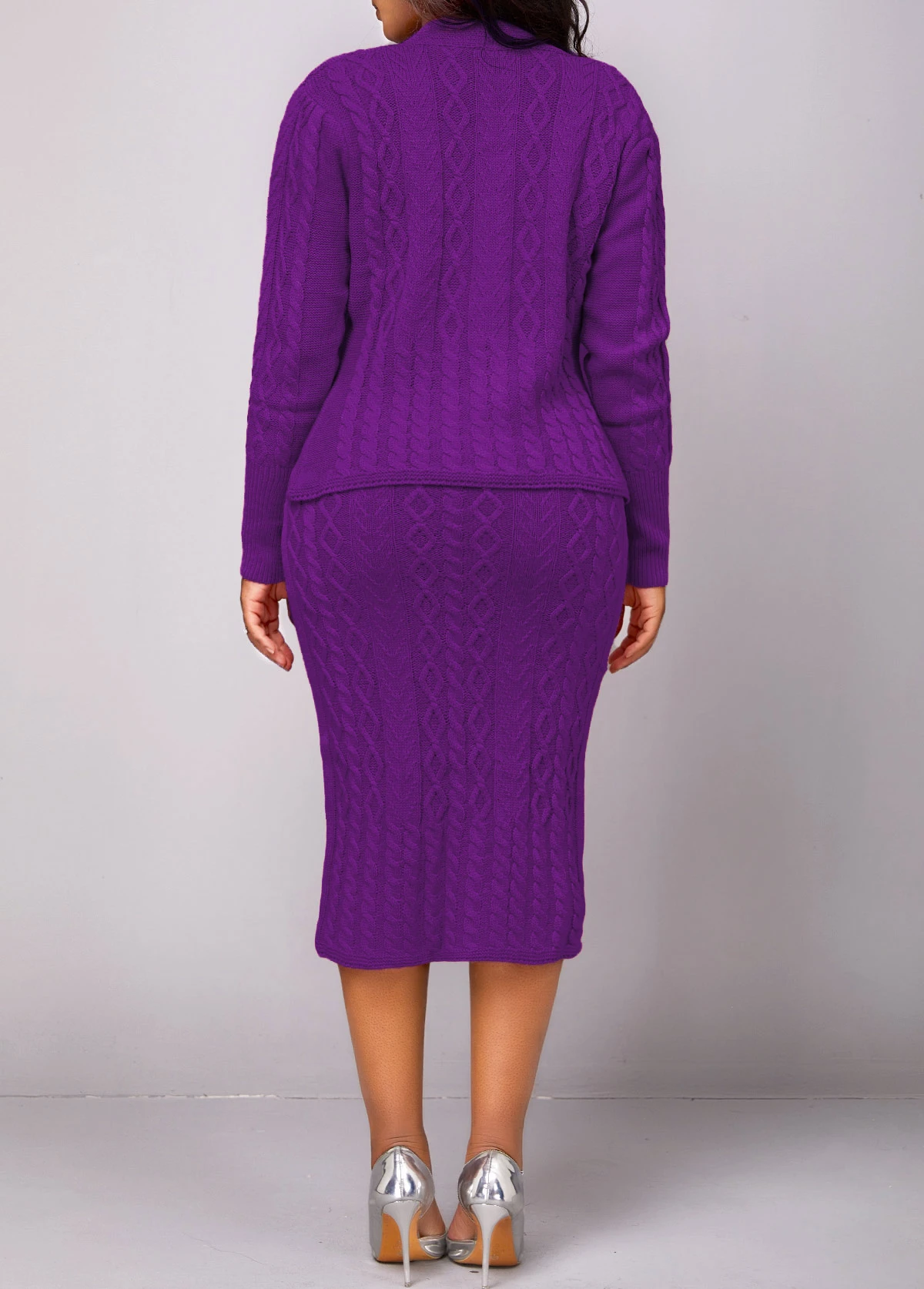 Violet Long Sleeve Button Top And Skirt