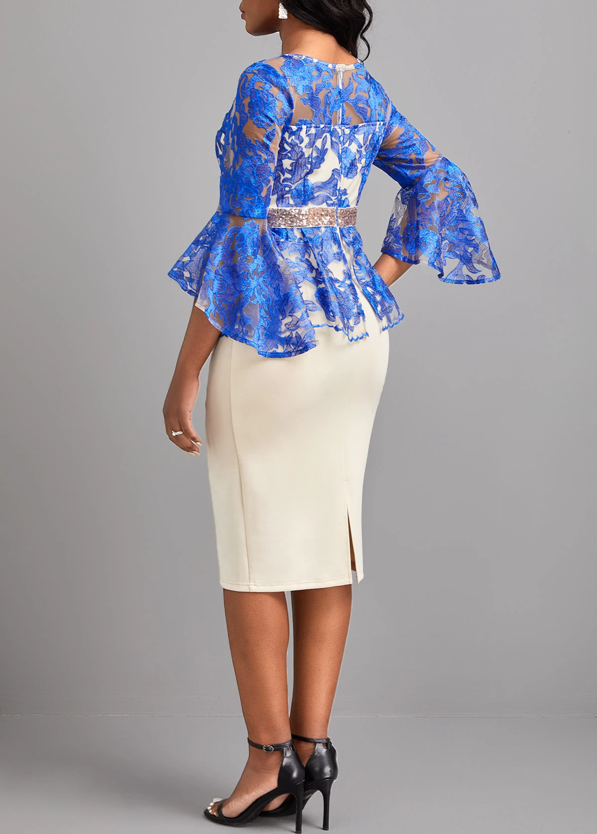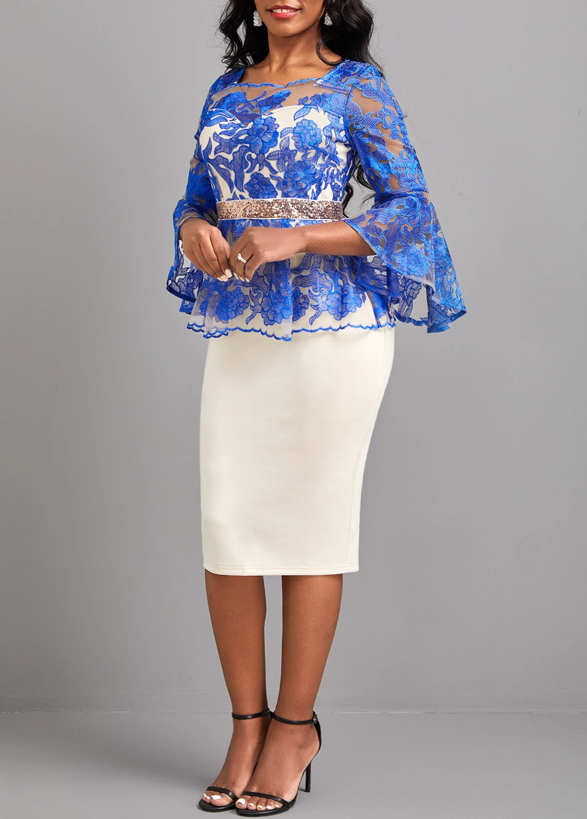 White Embroidery 3/4 Sleeve Bodycon Dress