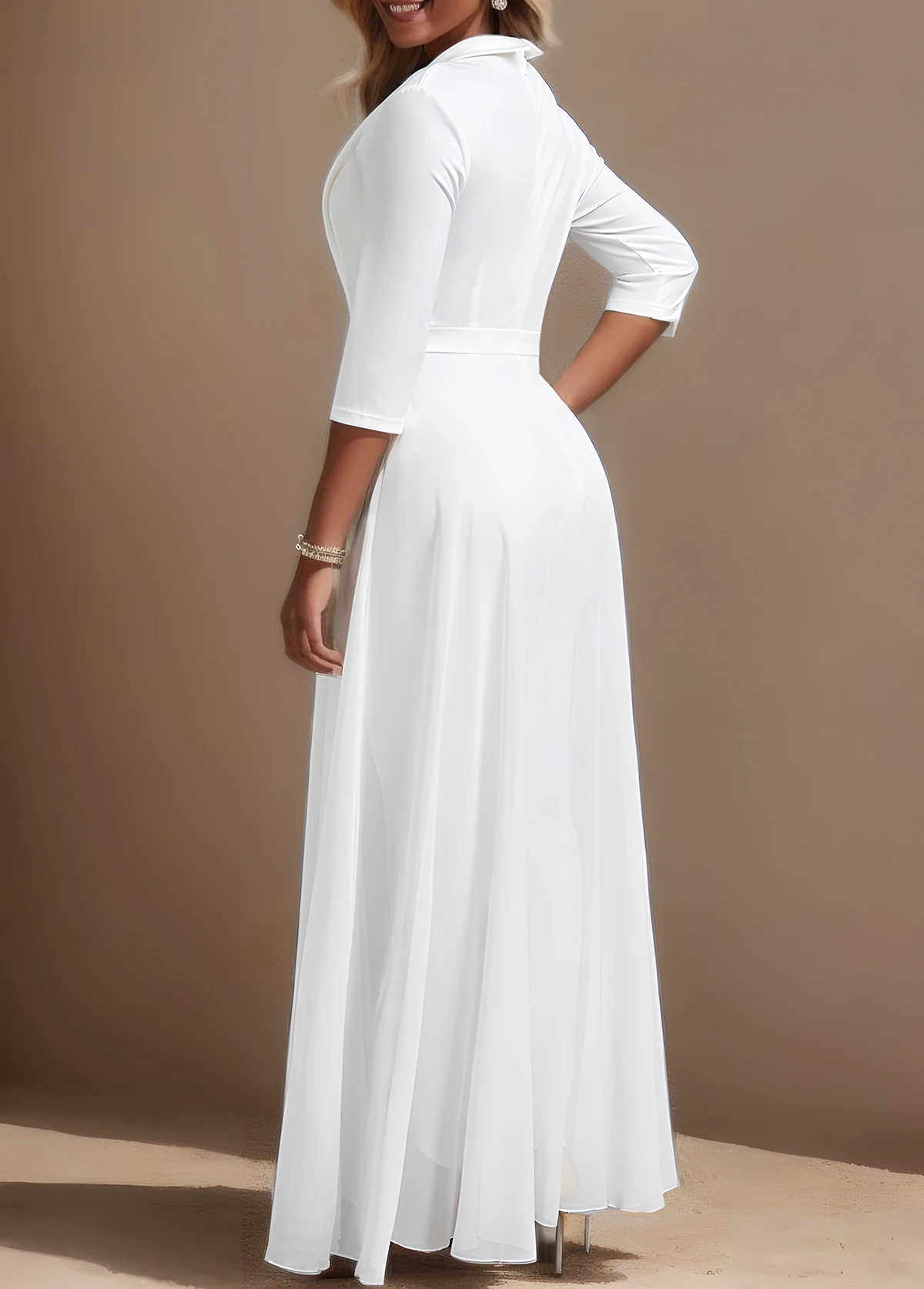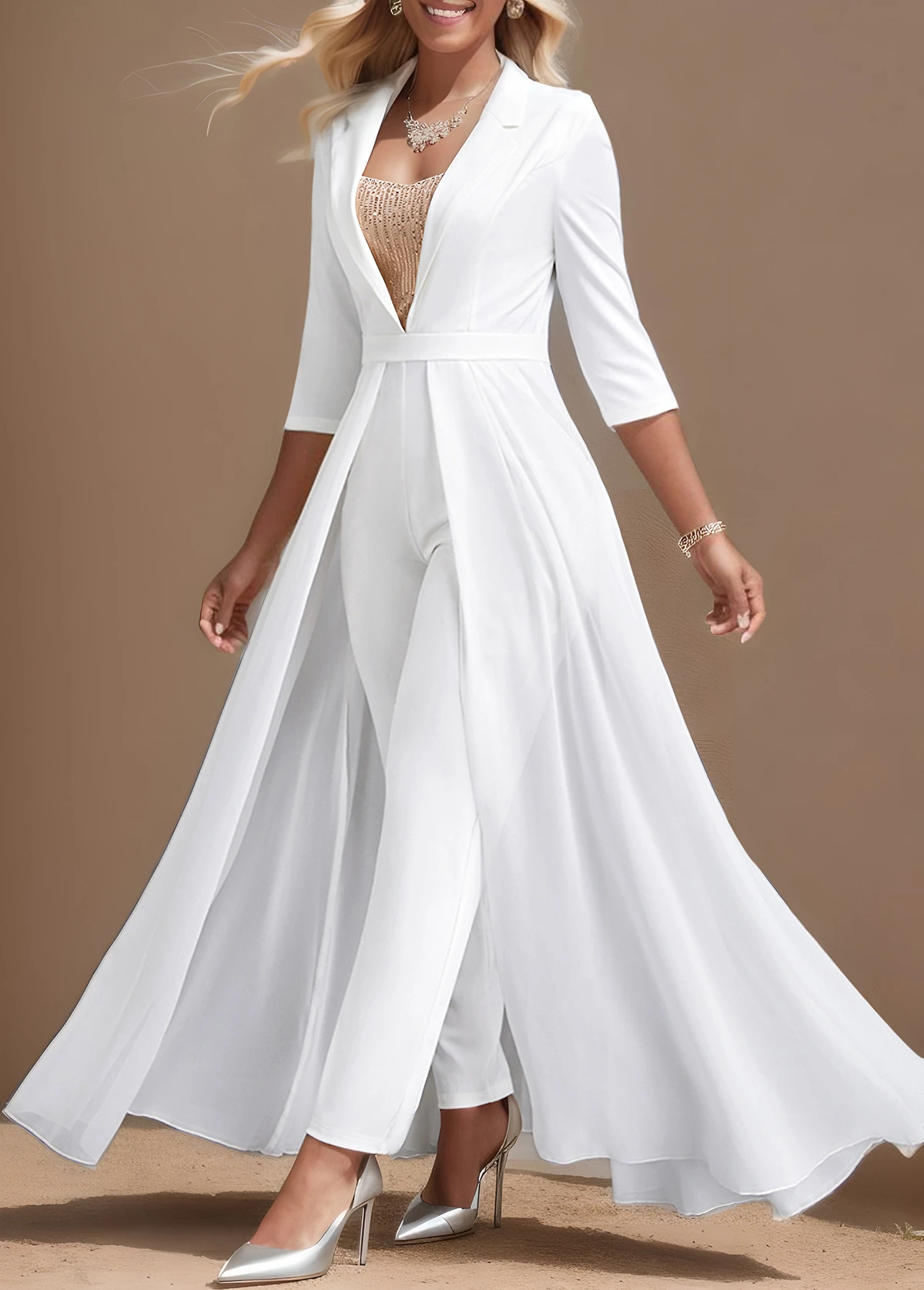 White Sequin Ankle Length Lapel Regular Jumpsuit